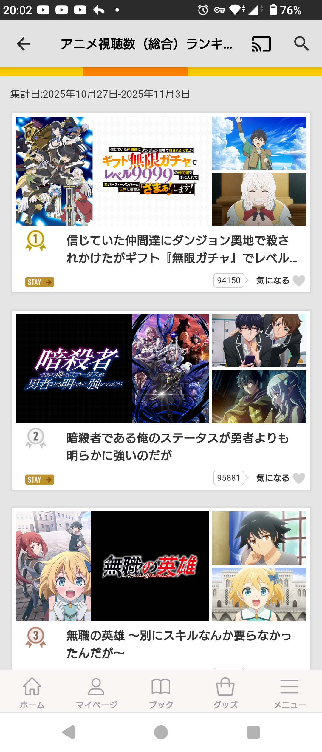 話題にはなってないから覇権にはならないんやろな